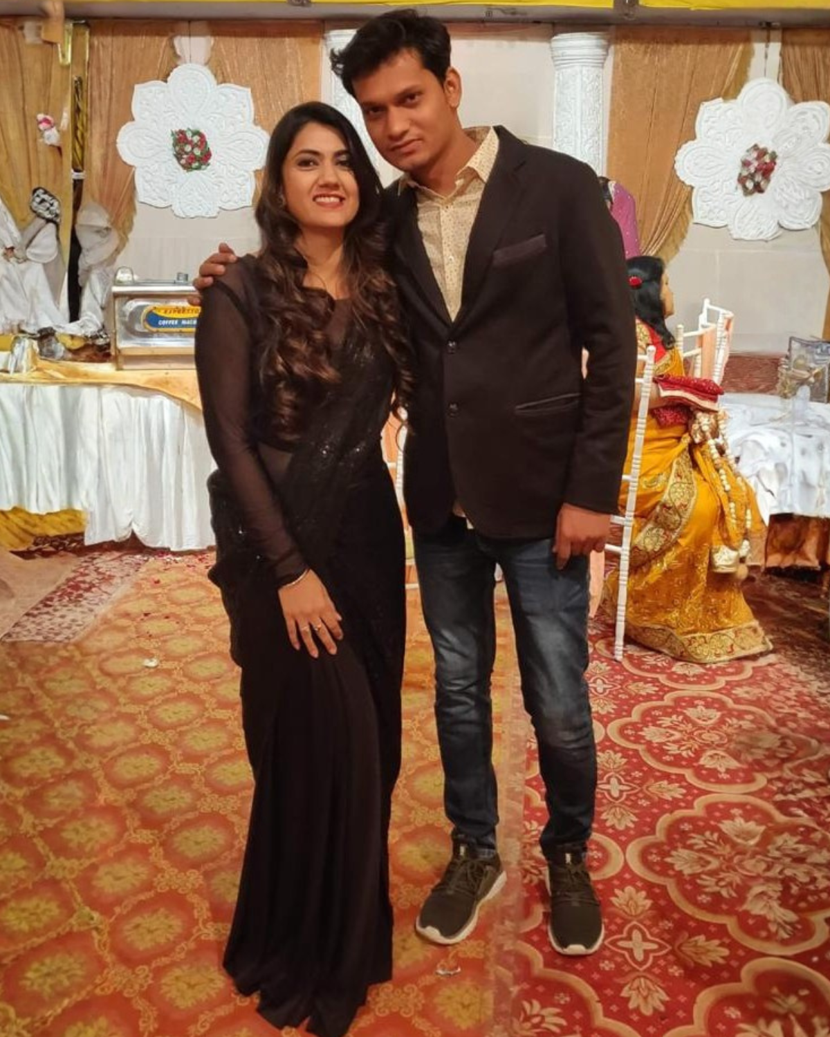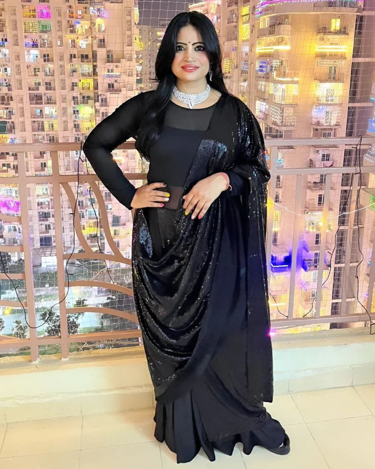 Discover elegance redefined with our black georgette sequin saree from "Twam Sundara". Effortlessly stylish, it comes with an attached Lycra top and bottom for easy wear. Crafted by skilled artisans, this ready-to-wear ensemble exudes glamour, ensuring you're the showstopper at any event.